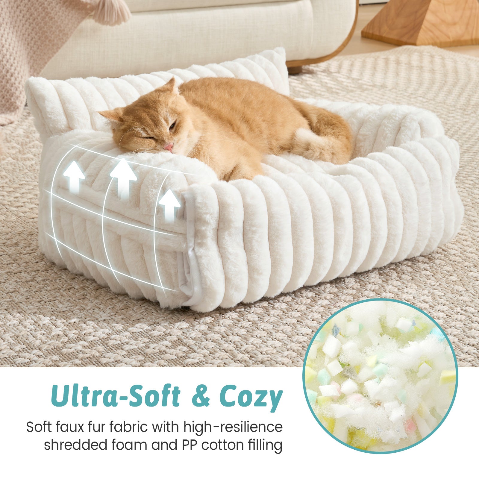 - Ultra-Plush Cat Couch: Premium shredded foam & PP cotton filling resists clumping for lasting support. Wrapped in cloud-soft faux fur, the cozy cat beds for indoor cats keep pets warm year-round. Perfect for curling up for naps or full-body stretches!