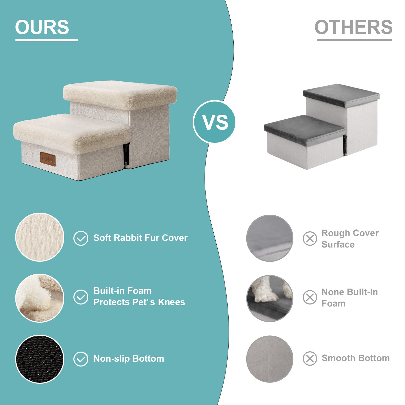 Give your small pet safe access to furniture while keeping their essentials organized with our innovative storage stairs. Perfect for puppies and pets with joint concerns (each step under 5" high).