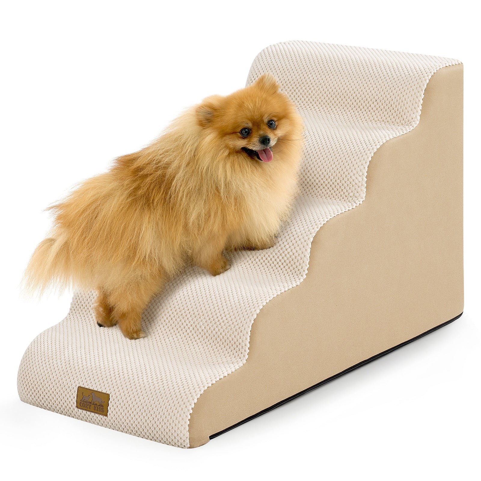 - STABLE & SAFE: Our pet stairs have a gentler slope for enhanced safety and stability. While our 4-step model (15.7 inches high) and 5-step model (19.7 inches high) are the same height as conventional 3- and 4-step staircases, respectively, their improved design makes them much easier to climb. The four-step model is ideal for sofas, low beds, and chairs, while the five-step model is better suited for standard-height beds and windowsills. Please select according to your needs.