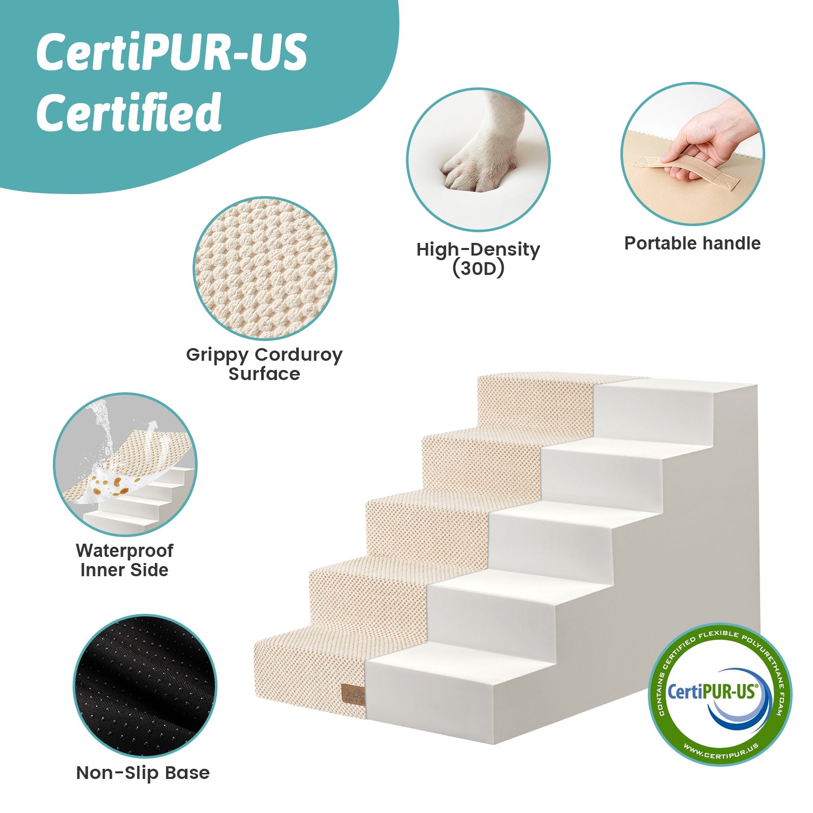 - Firm and Supportive: Made with 30D high-Density foam, this pet stairs for small dogs can keep its shape and support, even after years of daily use. Your pet gets a safe, stable step every time—protecting their joints and giving you peace of mind. Perfect for small to medium dogs.