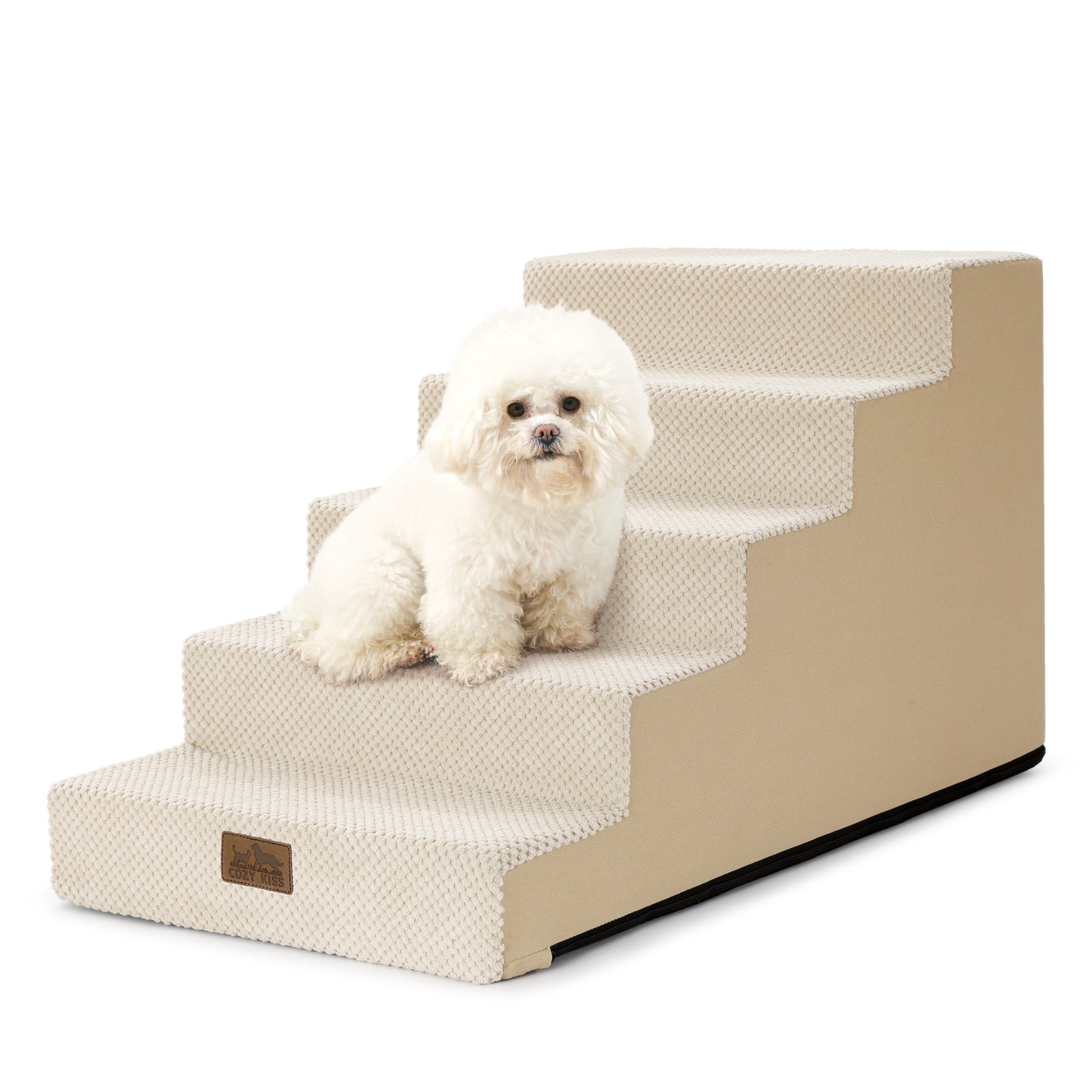 - Firm and Supportive: Made with 30D high-Density foam, this pet stairs for small dogs can keep its shape and support, even after years of daily use. Your pet gets a safe, stable step every time—protecting their joints and giving you peace of mind. Perfect for small to medium dogs.