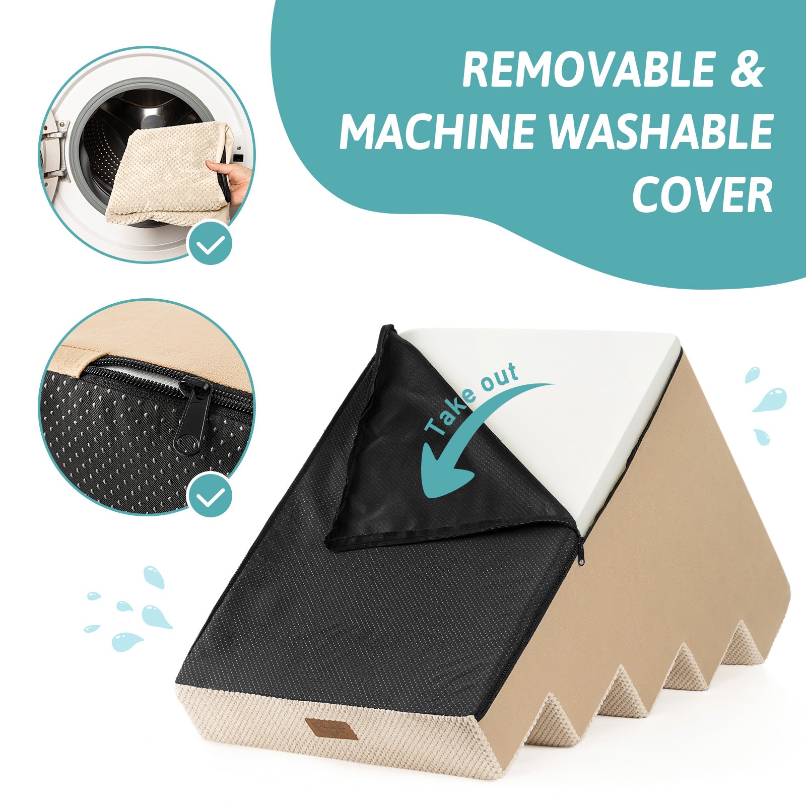 - Machine Washable Cover: Accidents happen, but stains and odors don't have to stay! Our removable cover of cat steps features a hidden waterproof liner that blocks liquids from reaching the foam core. For easy cleanup, simply unzip and toss the entire cover into the washing machine. Note: The foam interior should not be washed.