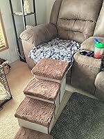 I have a 25 pound dog that has arthritis in his back area, I bought it so I don’t have to lift him when he’s sore. He seems to like it. It’s a natural step for him. It’s nice, but it is made of sturdy cardboard though. It goes out more than I’d hoped but that’s what steps do. I’d buy it again, actually it has some storage on the top step so I put his toys in there.