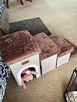 - 3-IN-1 PET STAIRS WITH STORAGE AND CONDO: The versatile dog stairs not only provide a stable and comfortable step for your pet, but also feature a spacious storage area perfect for storing pet clothes, toys, or other essentials. Additionally, it is a cat condo with a soft plush mattress for cat a cozy sleeping spot. This pet stairs design is ideal for households with cats and dogs, catering to all your needs.