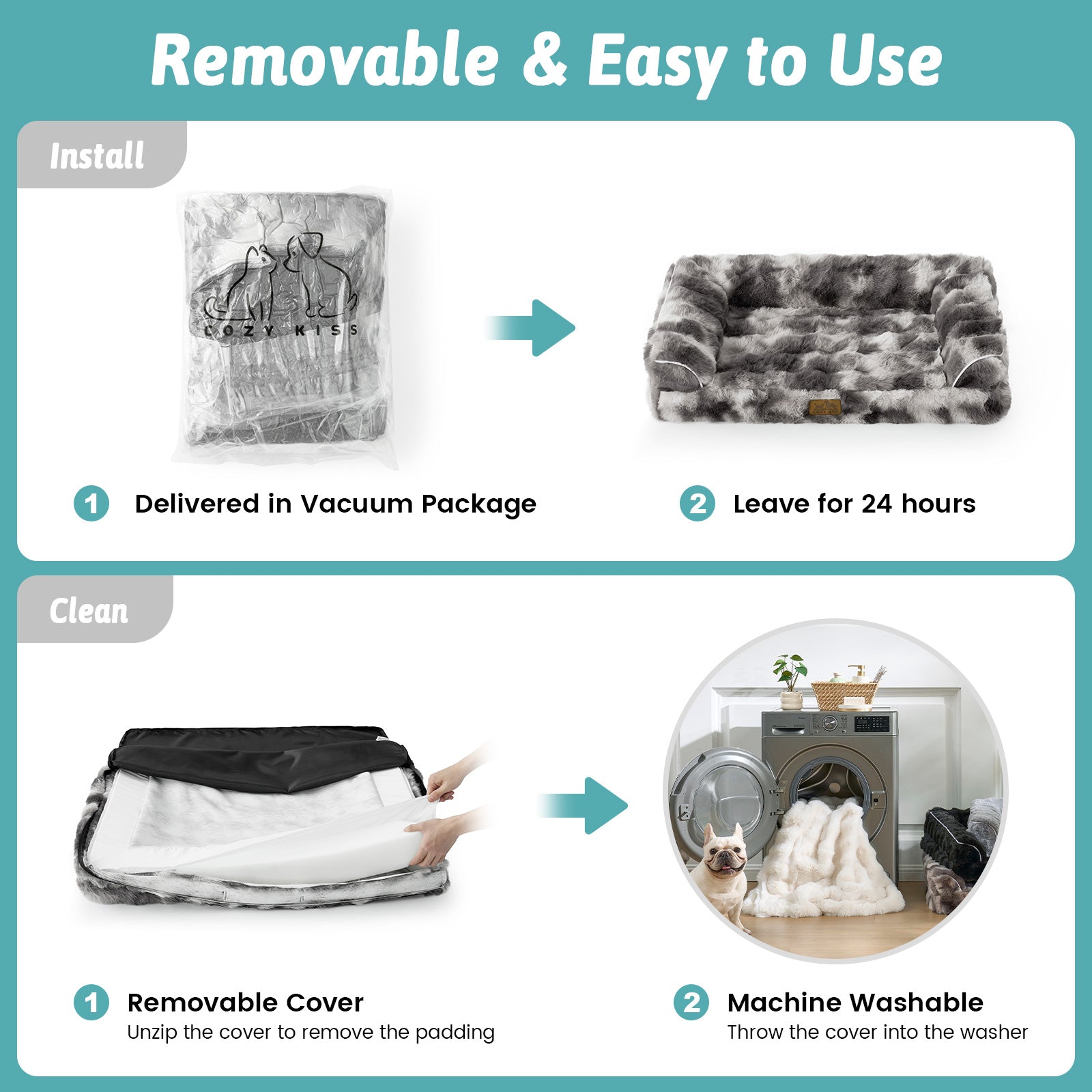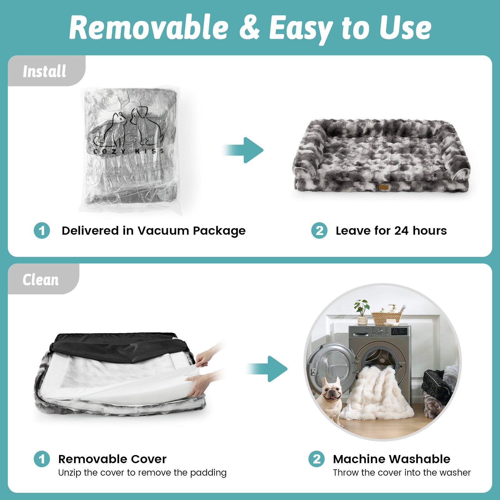 - Orthopedic Support: COZY KISS's orthopedic dog sofa is made of high-density egg cage foam, which helps to evenly distribute weight and provides perfect decompression and joint support. Please note that the inner lining helps to prevent liquid penetration into foam, but the soft plush outer layer itself is not waterproof